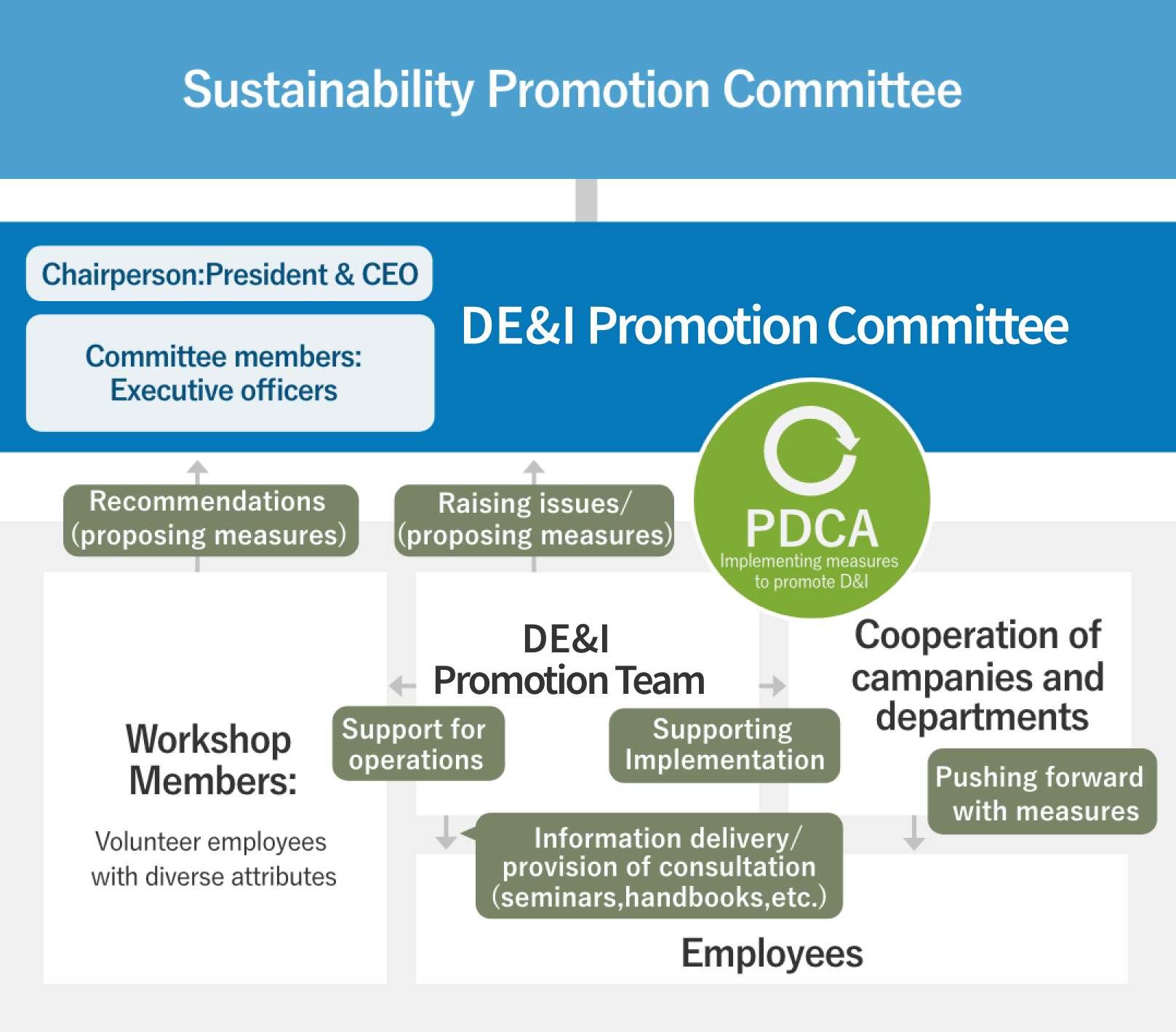 We are promoting DE&I as part of the activities of the Sustainability Promotion Committee, which was established with the aim of furthering the sustainable development of the Group and society.