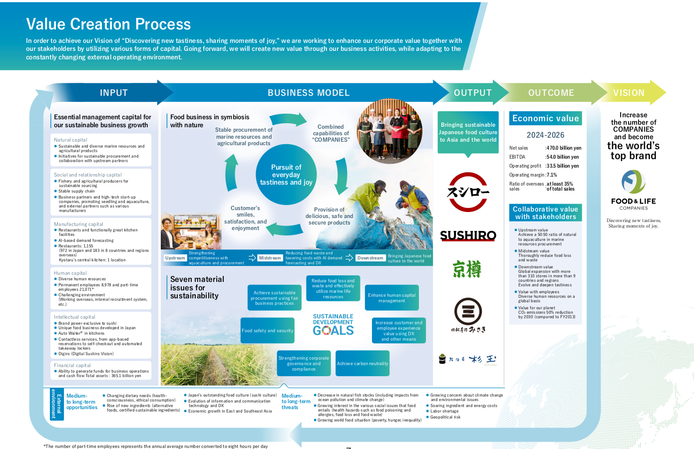 F&LC, which has its roots in a sushi restaurant that originated in Osaka, is accelerating its expansion in Japan and other parts of Asia with its chains of restaurants including “Sushiro,” “Kyotaru” and “Conveyor belt sushi Misaki,” which showcase the skills of their artisans, and “Izakaya” restaurants.