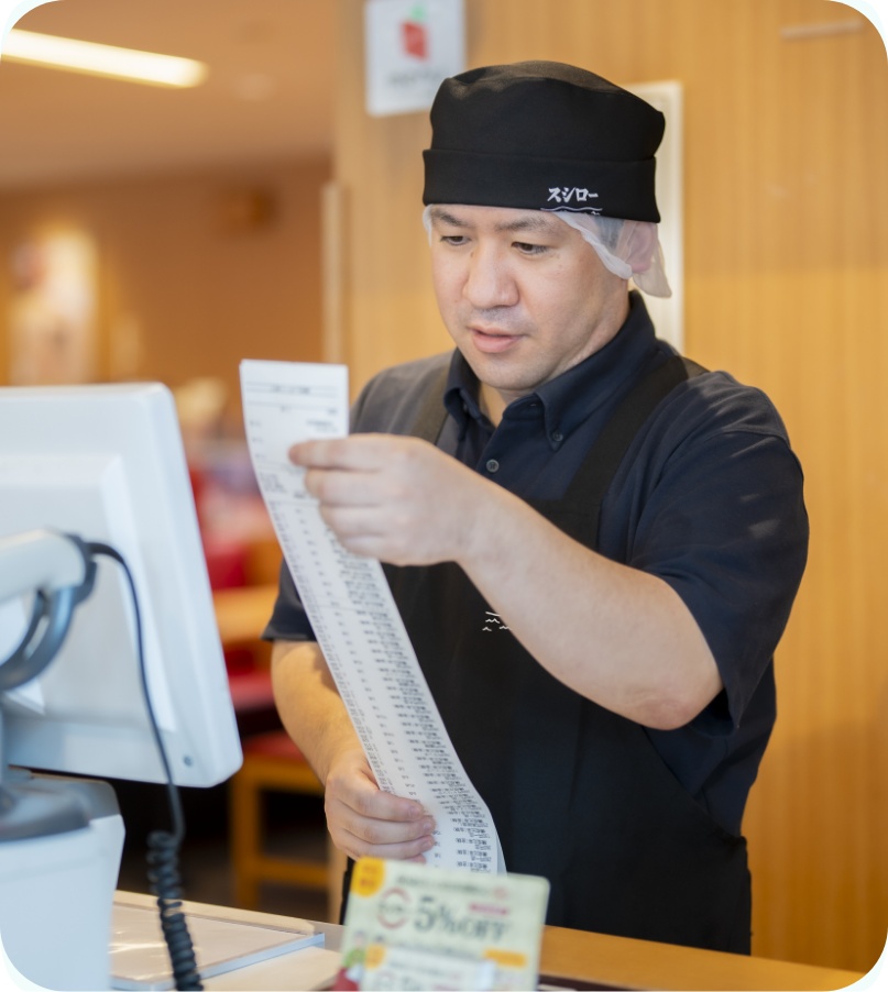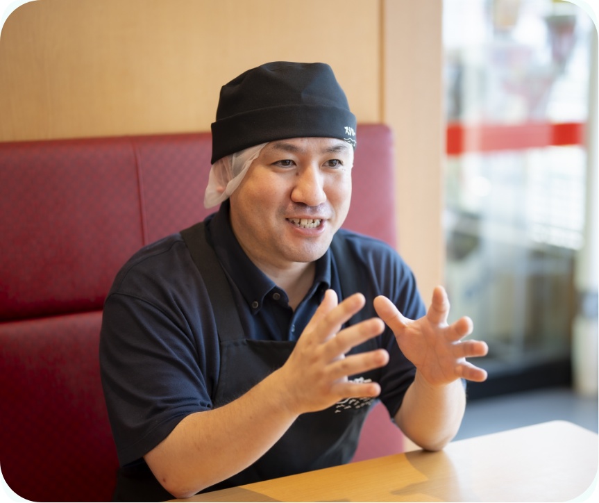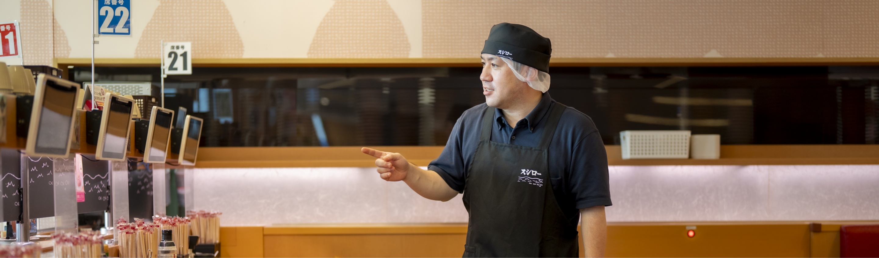 受験を終えて大学入学と同時にスシローでアルバイトとして週3〜4日の頻度で学業とはバランスをとりながら働いてきました。そして就職活動のタイミングで当時お世話になっていた社員の方に誘ってもらい、2009年に新卒社員として入社しました。入社後は中部地区を中心に主に店長として店舗の運営に携わってきました。私の場合は比較的転勤が多く、半年に一度くらいのスパンで異動を繰り返してきました。その間2回の新規店舗の立ち上げを経験し、大きなやりがいも感じていました。新店舗立ち上げは、最新の設備を導入するなどチャレンジングなことが多かったので特に印象に残っています。