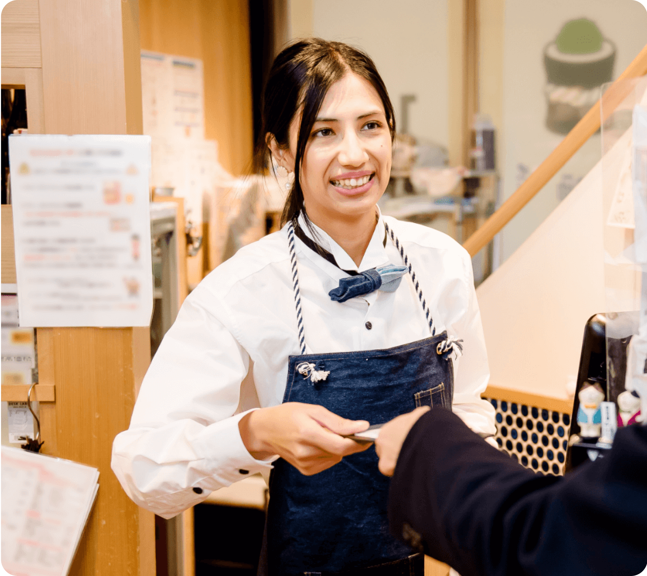 日本での店舗運営経験を活かし、母国にて新規出店に携わる方々がいます。効率的な店舗オペレーションや、お客さまに喜んでいただける接客技術を、母国の店舗にて展開しながら、日本のすし文化を世界に伝えています。海外出店は今後も拡大する予定ですので、さらにご活躍いただけるよう、会社も全力でサポートしていきます。