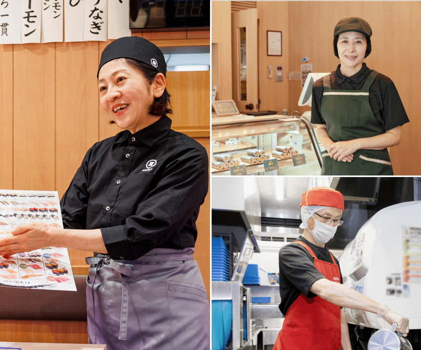 ※各社の最高齢店長 あきんどスシロー:57歳 京樽:64歳 FOOD&LIFE INNOVATIONS:56歳
