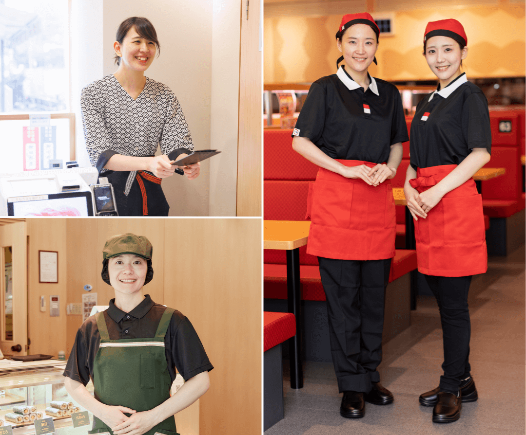 シフトを柔軟に調整することができるので、週2日・短時間勤務からフルタイムまで、多様な働き方が可能です。進学や、出産などのライフイベントに合わせて働き方を変えることで、多くの方に長く勤めていただいています。様々な営業時間の業態があるので、ご自身のライフスタイルに合わせた時間帯で働くことが可能です。