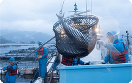 当社では、気候変動による魚類の調達不安定化リスクに備え、養殖業への支援強化をおこなってまいりました。 具体的には、資本参加をした尾鷲物産株式会社とともに、養殖技術の開発・確立や給餌方法の研究などを行っております。